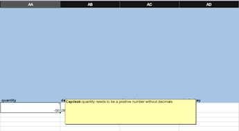4. Complete the downloaded spreadsheet. The required fields will be in blue columns. These are the mandatory fields: