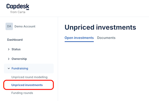 1. Navigate to Fundraising > Unpriced investments.
