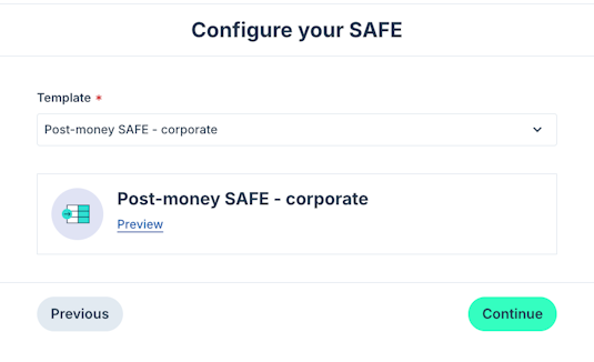 In this flow, you will be prompted to use Carta's templates for SAFEs and ASAs, but you can also use your own template.