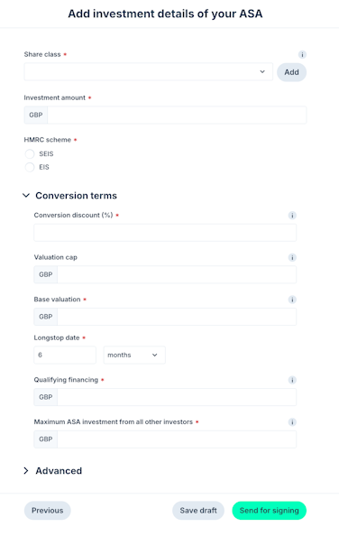 You can draft and issue online ASA or SAFE to your investors, track their signatures and sync the transactions automatically with your cap table once the investments are closed.
