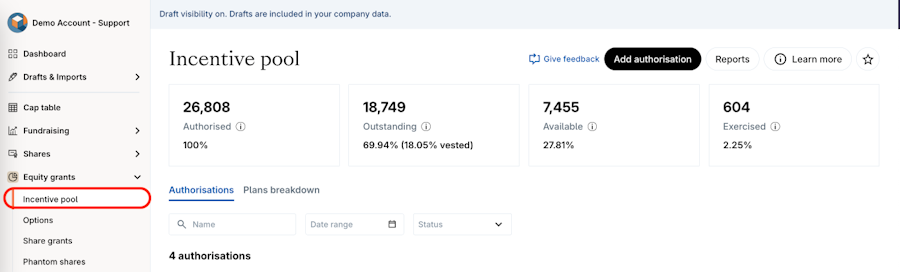 Shares Authorised - The number of shares you have set aside and authorised for the incentive pool.