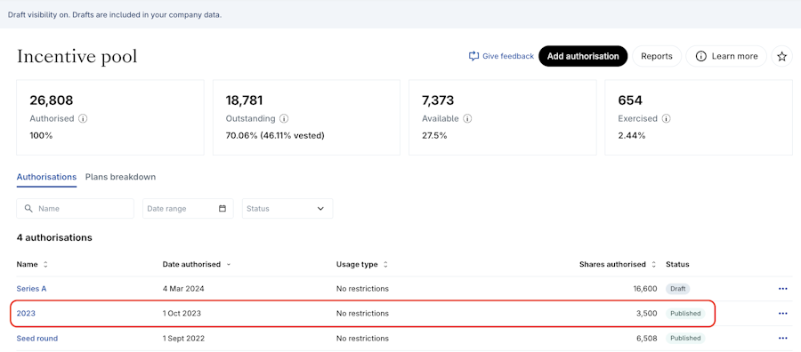 The authorisation will appear on the 'Incentive Pool' page and you will be able to see the breakdown of the pool by authorisation.