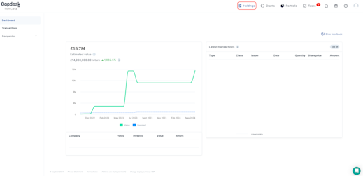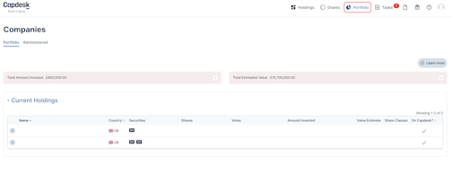 Clicking the Holdings tab will direct you to the investor dashboard in which is possible to find the summary of the shareholdings at a company.