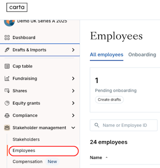 1. Navigate to Stakeholder management > Employees.