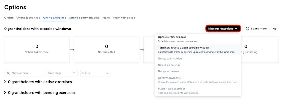 Terminating grants and opening an exercise window