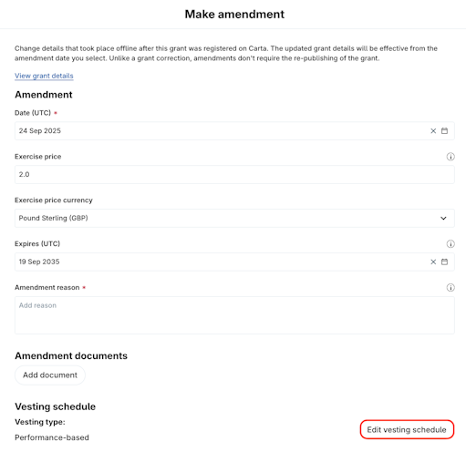 5. Locate the Vesting schedule section and click Edit vesting schedule.