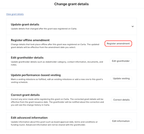 4. Click Register amendment.
