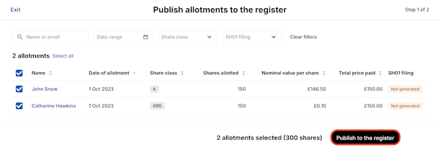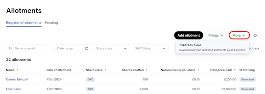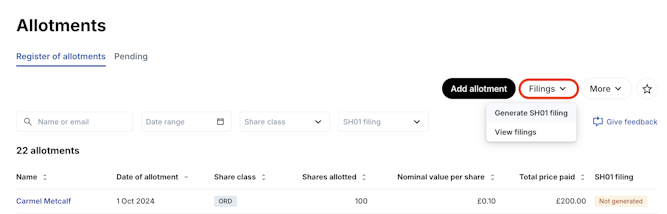 Easily create a register of allotments to file with Companies House.