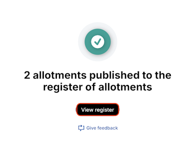 5. Click View register to return to the pending allotments page where you can continue to review and managing allotments before publishing them to your register.