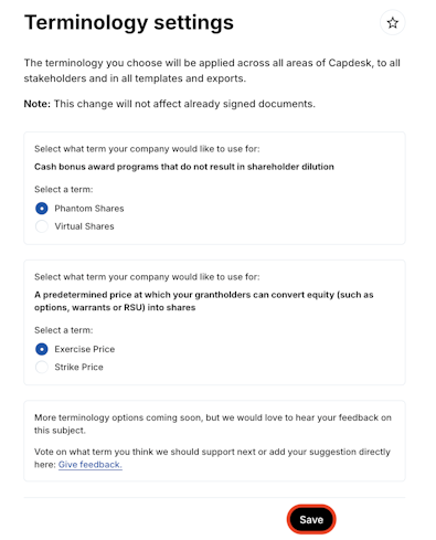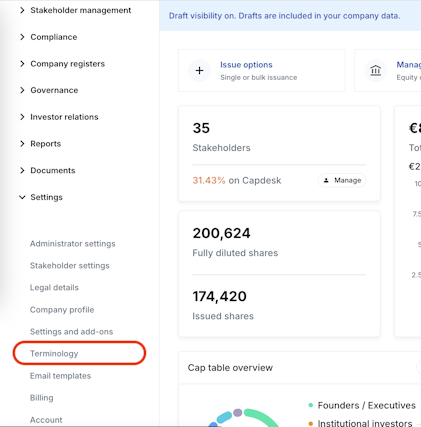 1. Navigate to Settings > Terminology.