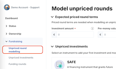 1. Navigate to Fundraising > Unpriced round modelling.