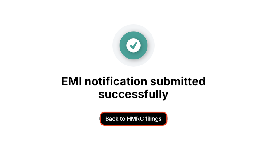 4. Once successfully submitted, click Back to HMRC filings. The filing you just registered will be stored in the HMRC Filings page with the status Filed.