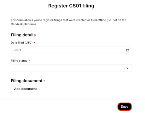 3. Add the filing details and click Save.